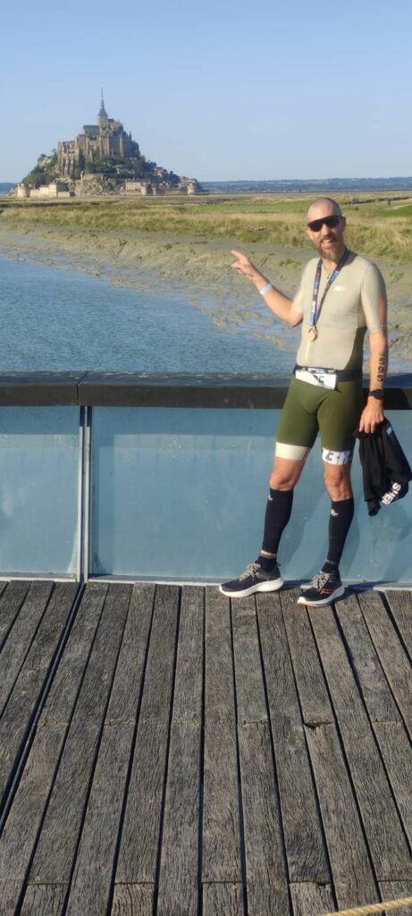Notre ami Yoann a participé  et terminé le week-end dernier le triathlon L du Mont Saint Michel ! Soit 1900 m  de natation, 90 km de vélo avec 750 m  de d+ et 21 km de course à pied  pour un effort de 06h46mn15s.